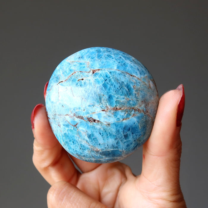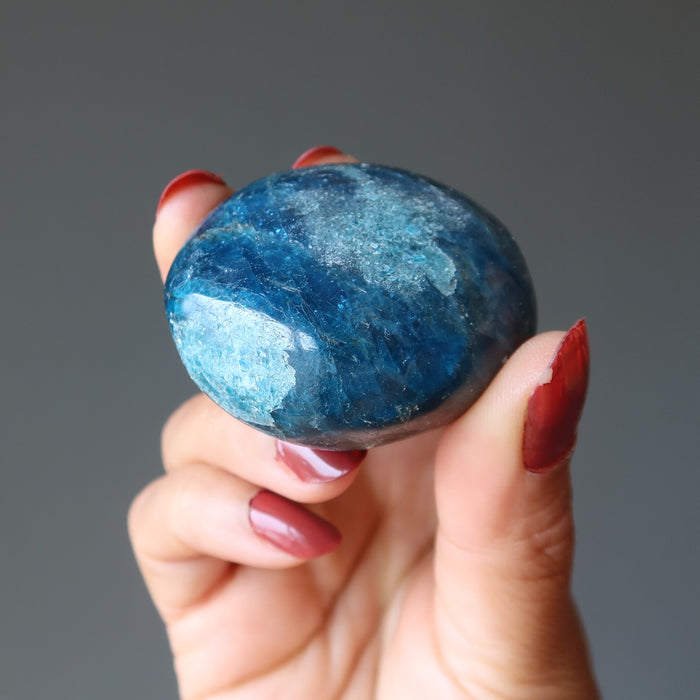 Embrace the natural beauty of this Apatite palm stone, featuring striking rocky veins and flowing blue waves that highlight its authentic essence. Let it inspire you to confidently be your true self, celebrate your unique qualities, and thrive with genuine self-assurance.