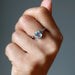 Your ring features a natural and heated translucent blue Aquamarine. The gemstone is faceted into an oval and set in white bronze. *The metal was created using the same mold as sterling silver: it will show a 925 stamp, but it is white bronze.