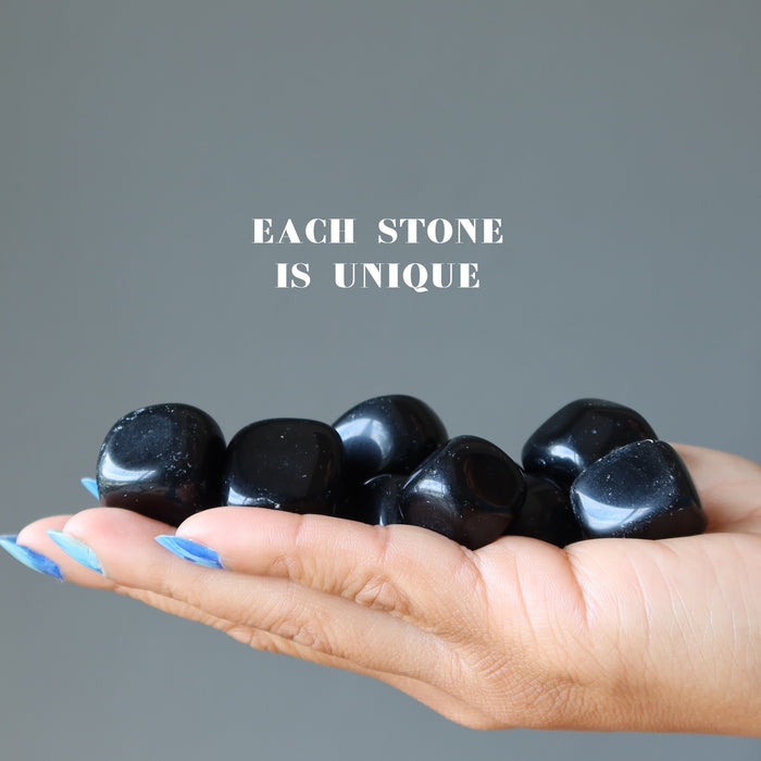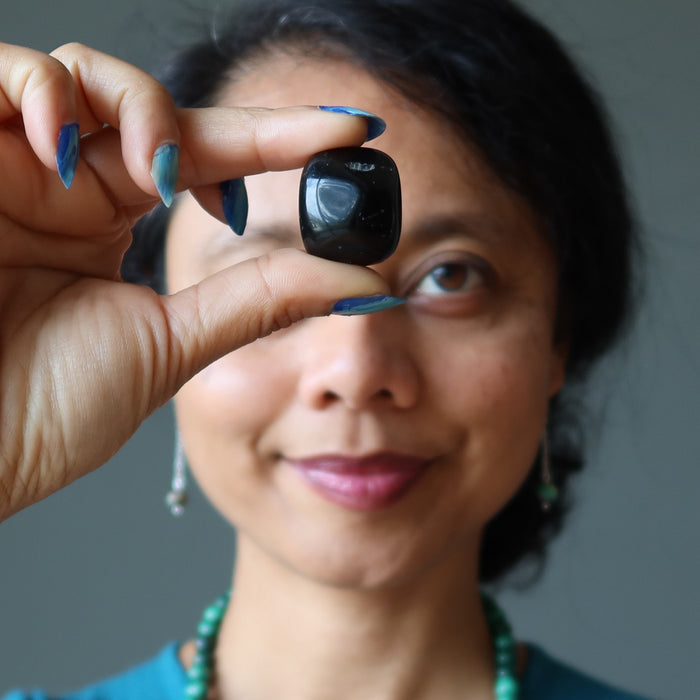 Your new stone is tumbled from natural and untreated Obsidian. This opaque to translucent black volcanic stone retains veins, pits, and inclusions. Each stone is unique.
