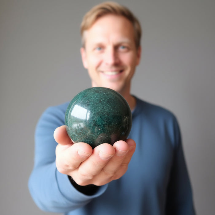 This beautiful Bloodstone sphere makes you feel alive and festive. The red and yellow plasma within the deep green stone provides you with the energy of brave abundance. Live bold as you use this sphere to manifest your dreams. Place it on display to impress friends.