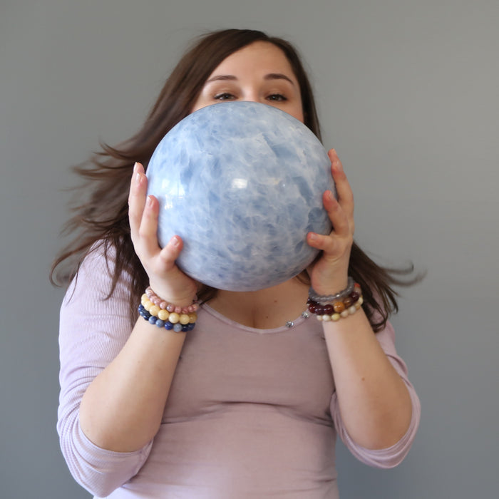 The Blue Calcite crystal ball brings zen to your den. In a space of calm serenity, your ideas unfold, and your words ring of wisdom.