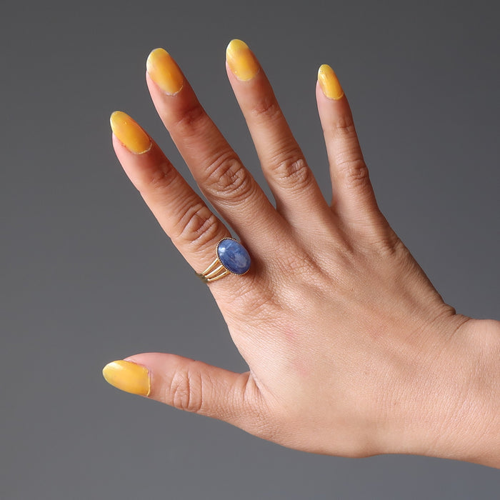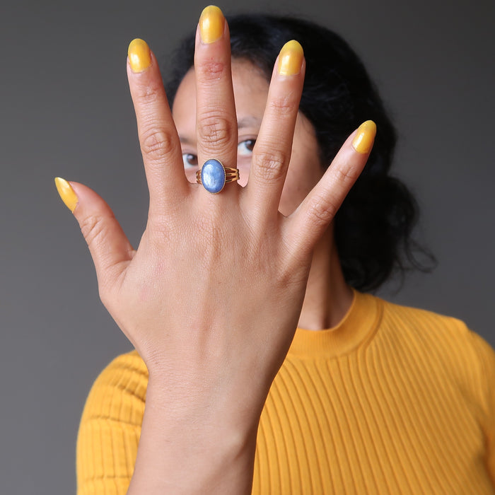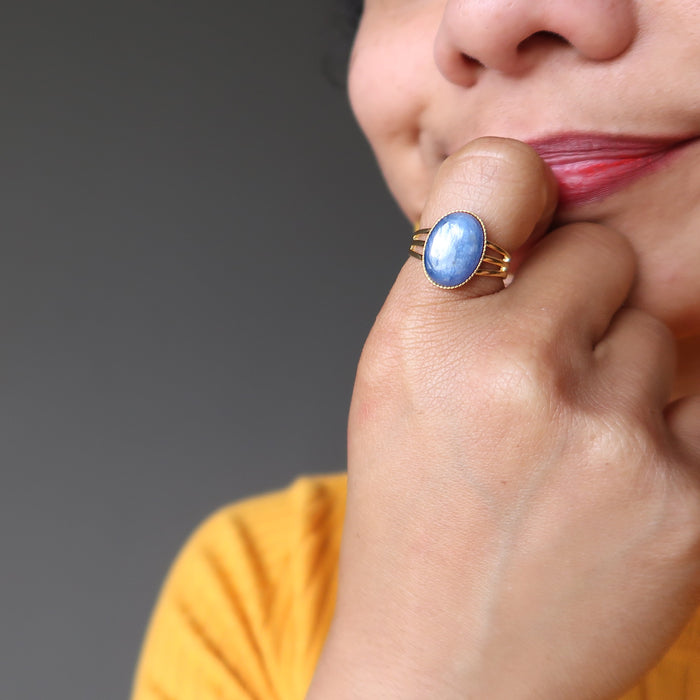 Kyanite Ring Blue Oval Gemstone Gold Adjustable