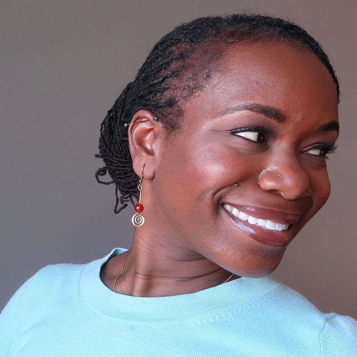 You are a lady of mystery, Miss Hypnotique. With these red Carnelian earrings, you can catch love at any turn of the corner. Those around you become enraptured in your charm and your deep soul.