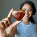Your new heart is polished from natural and heated Carnelian. This banded orange stone may show mineral inclusions and organic craters. Each stone differs.