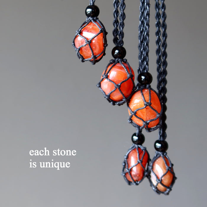 Carnelian Necklace Orange Hot Stuff Stone Macrame