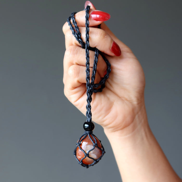 This Carnelian necklace is hot stuff. When you wear the bright crystal nested in the macrame cord, you look casual yet incredible. Carnelian is known to bring out your attractive traits and personality strengths. It's perfect for men, women, and all. Get it!