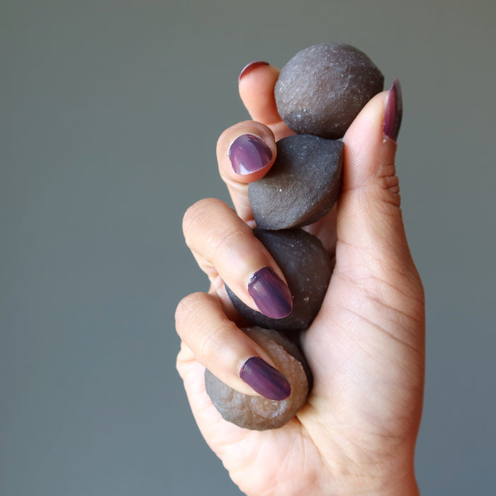 Your new stones are raw and untreated Chalcedony. These 4 stones are solid concretions of translucent, milky-brown Chalcedony. These stones are in their raw formation filled with organic surface pits and craters. Each stone is unique.