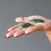 Your new stone is polished from natural and untreated Chrysocolla Malachite. It is hand-cut and polished by an American artisan. The stones have rich green tones with natural black and brown patterns. They are polished on the top and raw on the bottom, yet retain natural rocky grooves and ridges all over. Each stone is unique.