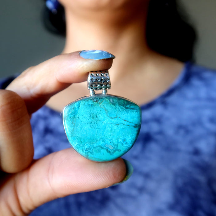 Chrysocolla Pendant Jungle Love Gem Sterling Silver