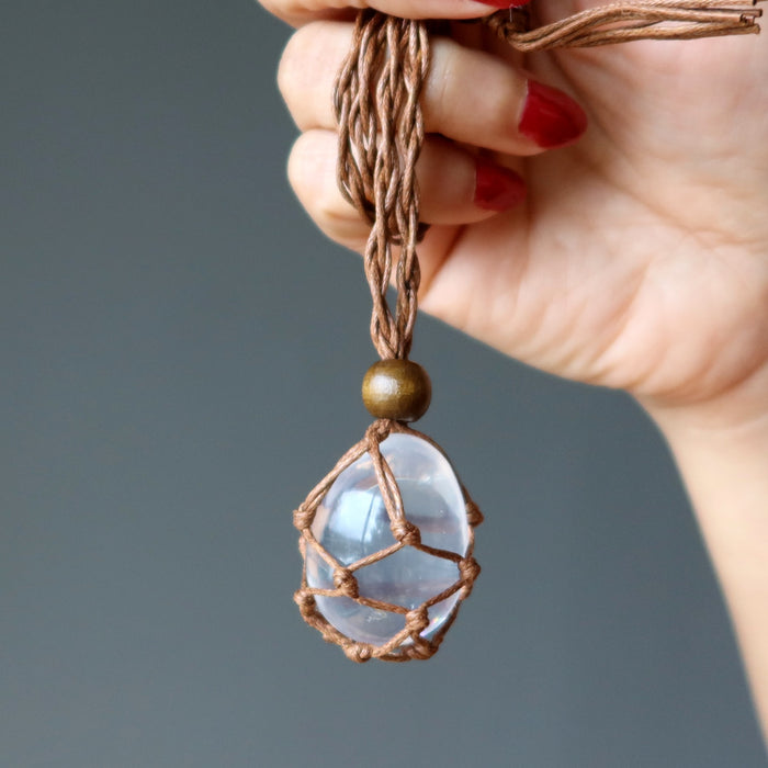 Clear Quartz Necklace Egg in Nest Macrame