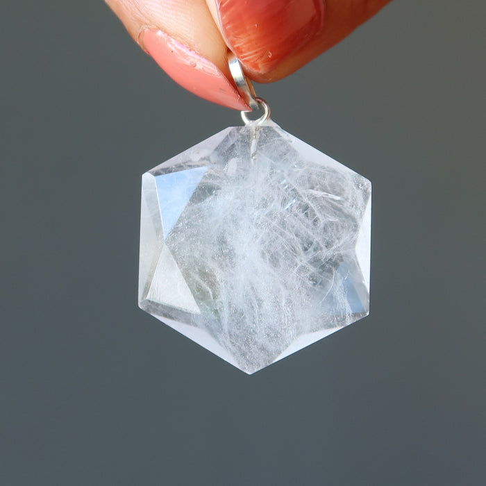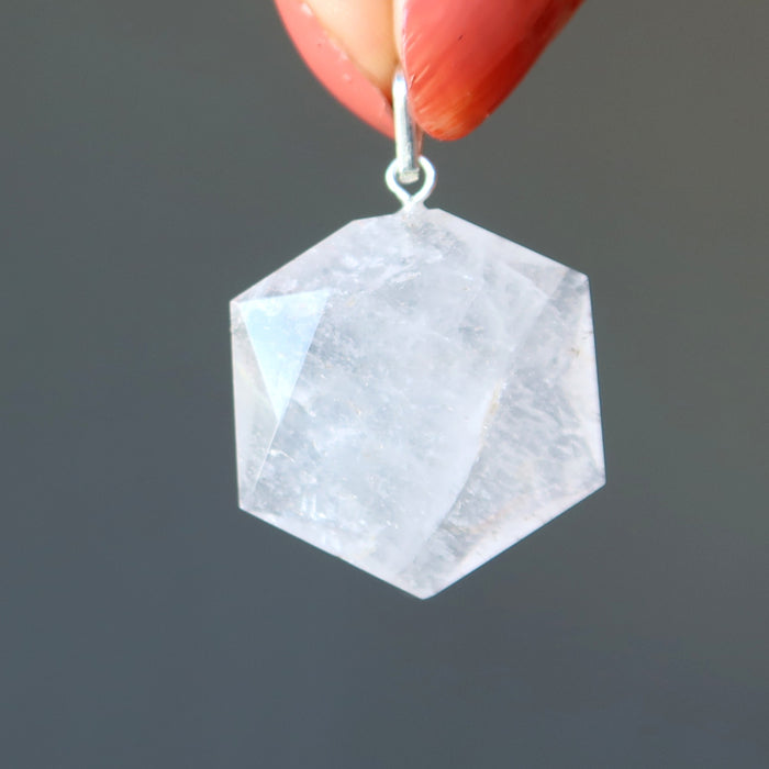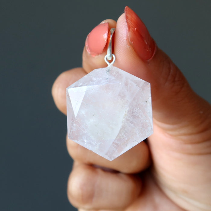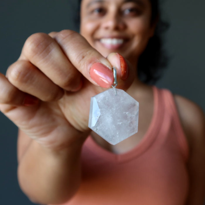 Clear Quartz Pendant Hexagon Time Traveler Silver