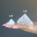 Your new pyramid is polished from natural and untreated Quartz. This is a translucent stone that may show organic planes, wisps, inclusions, and rainbows. Each stone differs; retaining natural pits, grooves, veins, and inclusions. As a hand-polished piece, the edges will not be machine-perfect. Pyramids are measured by width; height will vary.