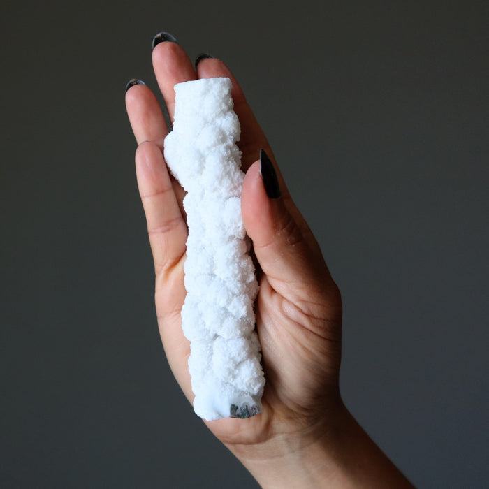 This enchanting Druzy Quartz raw crystal wand awakens magic and metaphysics. You are transported into the spiritual caverns of India and endowed with the visions of the mystics.