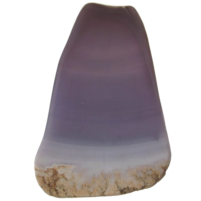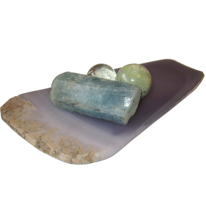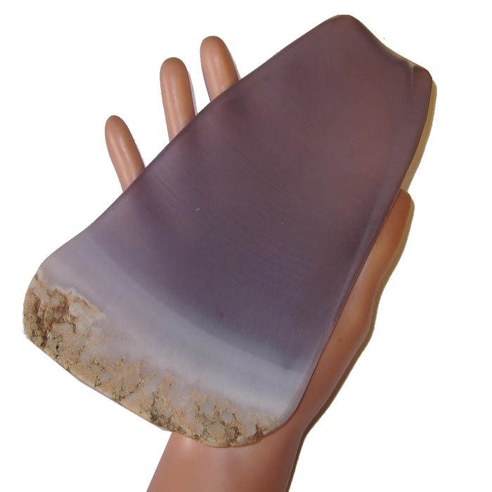 This amazing crystal plate is made from stunning purple Fluorite. The large piece has a slight transparency to the smooth body, and one end is left rocky true to nature. This display piece is polished matte, with some lines and ridges.