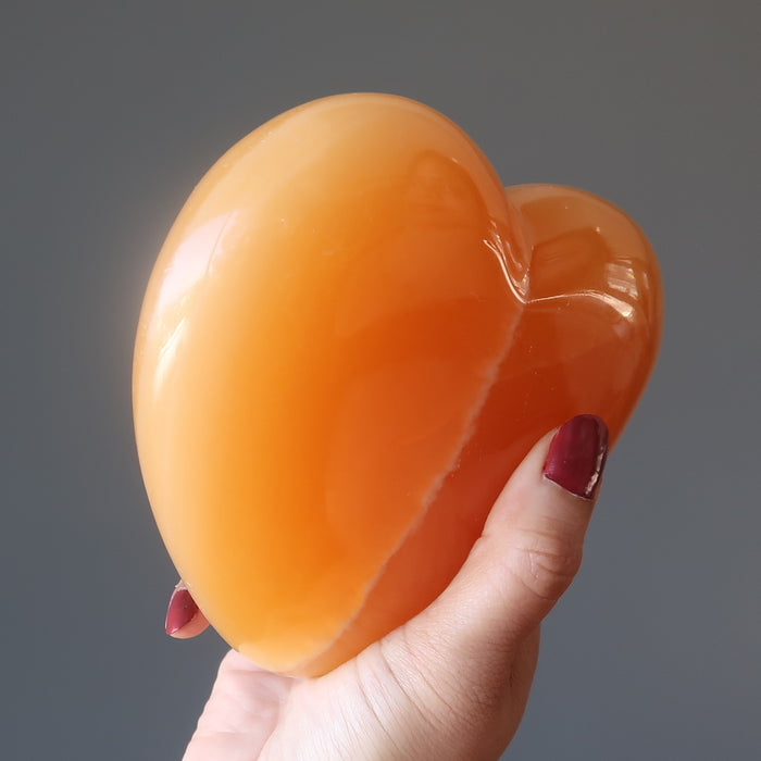 Your love can be as big and bright as this Orange Calcite heart. Heal and be happy with the Calcite's inspiring energy. The crystal fills the entire home with love vibrations. Everyone deserves an energetic hug with a gemstone heart to embrace them.