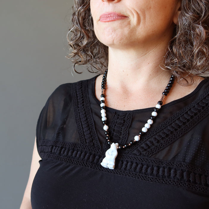 Life isn't always black and white, sometimes you need to make tough choices. Your wise Howlite bear necklace on protective Black Obsidian keeps you on the right side of life.