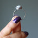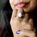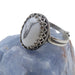 Your ring features natural and untreated Howlite. This is a white stone trickling with gray mineral inclusions. It is polished into a smooth oval cabochon and set in an antiqued sterling silver adjustable ring. Each stone is unique. Assembled in the Satin Crystals studio in the USA.