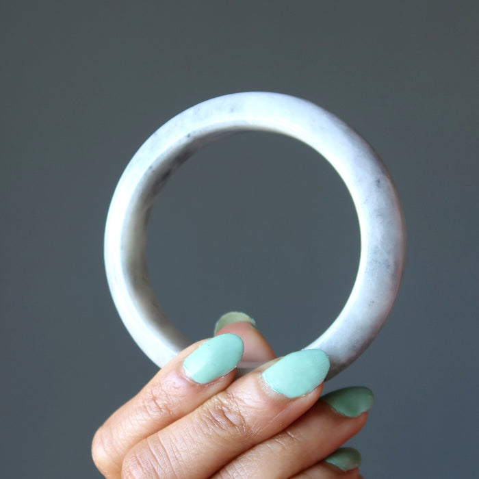Jade Bangle Bracelet Spiritual Cloud of Dreams Gray White Crystal
