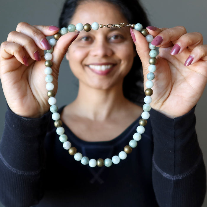Adorn yourself in luxe abundance each time you don this stunning Jade Necklace. Real Nephrite Jade comingles with brass accent beads, gives you a lavish look. Showcase your originality with this Jade necklace. You love attracting the best people and things in life.