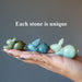 You have selected a natural and untreated Jadeite Jade from Myanmar. This is a creamy green gemstone that varies in color and inclusions. Each rabbit figurine is unique.