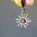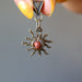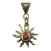 Your new pendant features a natural and untreated Red Jasper. The red stone may show unique inclusions and is polished into a round-ish bead and framed by an antiqued sun charm. Each is unique. Add a necklace chain.
