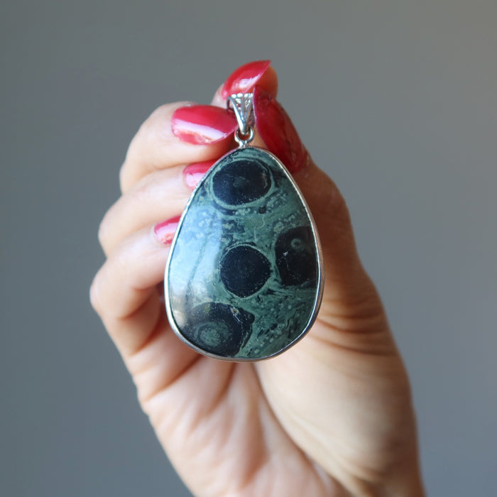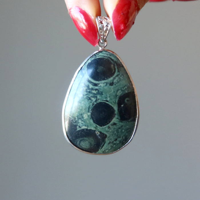 Have the pains of past relationships left you snapping like an angry crocodile? This Green Jasper pendant heals and protects you on the journey of love. It watches over you with many eyes so that you can move forward confidently in the big bad world.