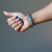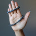 Your new bracelet features natural and untreated Blue Kyanite. These are shiny stones with yellow and white inclusions polished into roundish beads and strung on sturdy stretch cords. Each stone is unique. Beaded in the Satin Crystals studio in the USA.