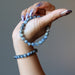 Dance as though everyone is watching. All eyes are on you as this shining blue Kyanite bracelet highlights the shimmer of your personality. Glossy beads glisten in the light, sending you calm confidence and an air of fun. Let go of your troubles. Tango your way to stardom with this gemstone jewel as your life partner.