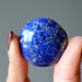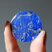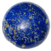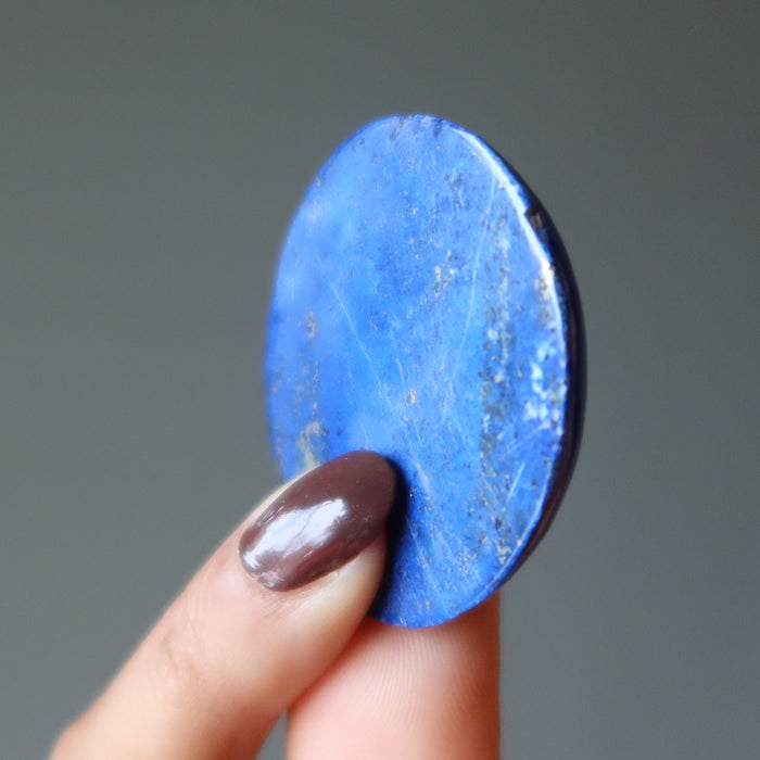 Your new cabochon features natural and untreated Lapis Lazuli from Afghanistan boasting royal blue tones, white Calcite, and gold Pyrite inclusions. It is polished into a circle, domed on top and flat on the bottom. It retains organic veins, dips, and craters. Each stone is unique.