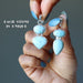 Your new pendant showcases natural and untreated Larimar. This is a patterned white and blue stone polished into an oval and teardrop. The gemstones are set in a sterling silver charm. Each stone is unique. Add a necklace chain.