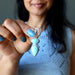 This real sterling silver Larimar pendant is your blessing in blue. The spiritual gemstone awakens your communication center and high chakras to an energy beyond the physical world. When you wear the attractive rare stone from the Dominican Republic, you free your voice and spirit.