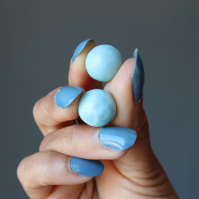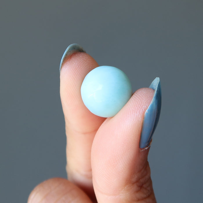 Heal in peace with your new calming blue Larimar sphere. This rare jewel gemstone cools your soul like a Caribbean breeze. Touch the tropical energy of Larimar through this crystal ball that is perfect for relaxation and meditation, vacations, and conversations.