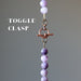 Your necklace showcases natural, untreated Lepidolite stones. These are purple and white stones polished into round beads and strung on a necklace secured with a toggle clasp. Each stone is unique. Beaded in the Satin Crystals studio in the USA.