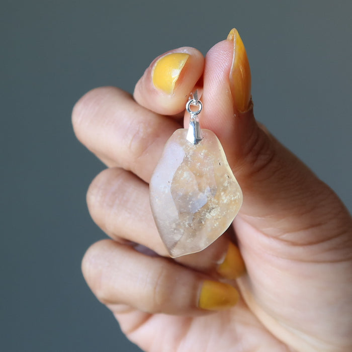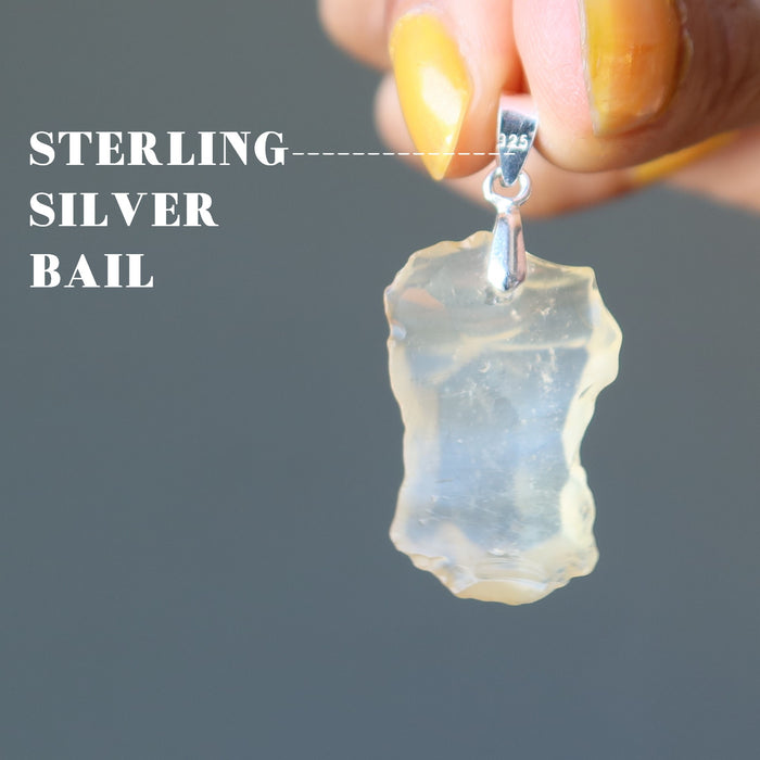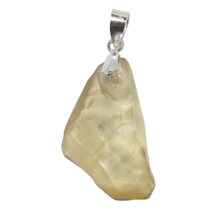 Your new pendant features natural and untreated Libyan Desert Glass stone. This is a translucent yellow Tektite in its organic, unaltered formation hanging from a sterling silver bail. Each stone is unique. Add a necklace chain.
