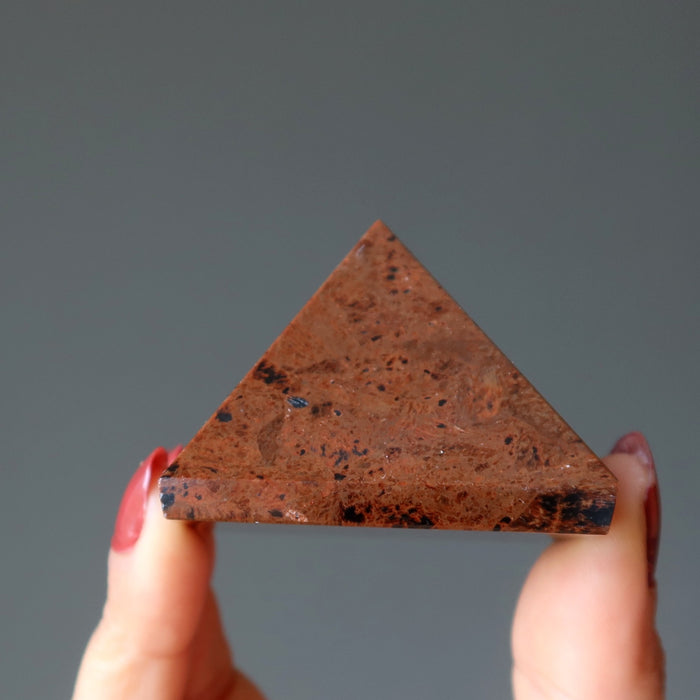 Your stunning pyramid is made from handsome Mahogany Obsidian with a deep woody tone and black patterns. You feel your spiritual and earthly status shifting, as the Mahogany Obsidian erupts with the energy of success and prestige.