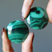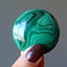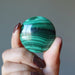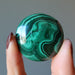Your new stone is polished from natural and untreated Malachite. The banded green round cabochon is domed with a flat back, excellent for jewelry making, use as a pocket stone, and placing on the body for crystal healing layouts. Each stone is unique.
