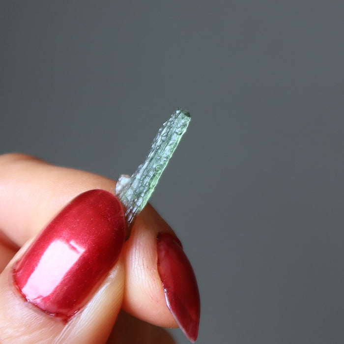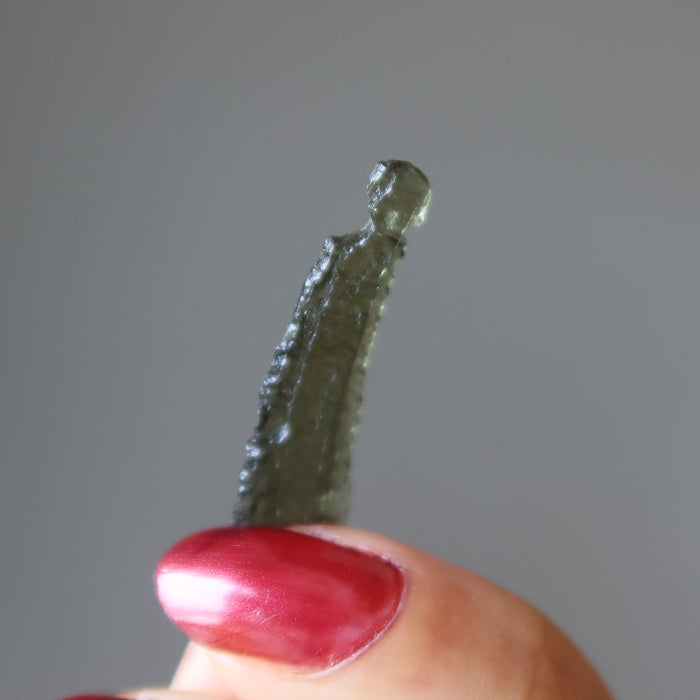 Moldavite Saber wands are natural green Tektites that have a long and narrow wand-like formation. Your piece is totally original and can range from light to dark green.