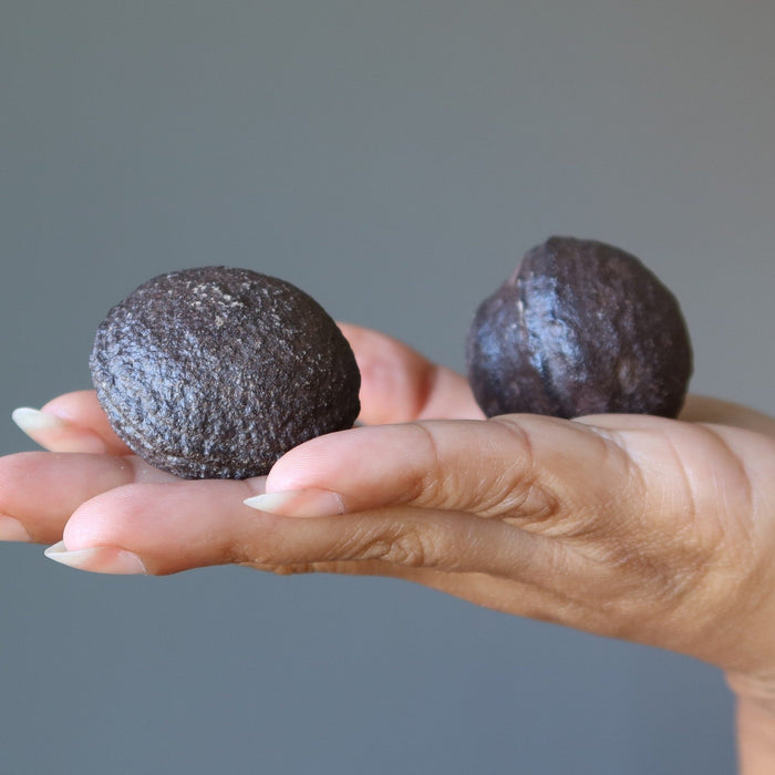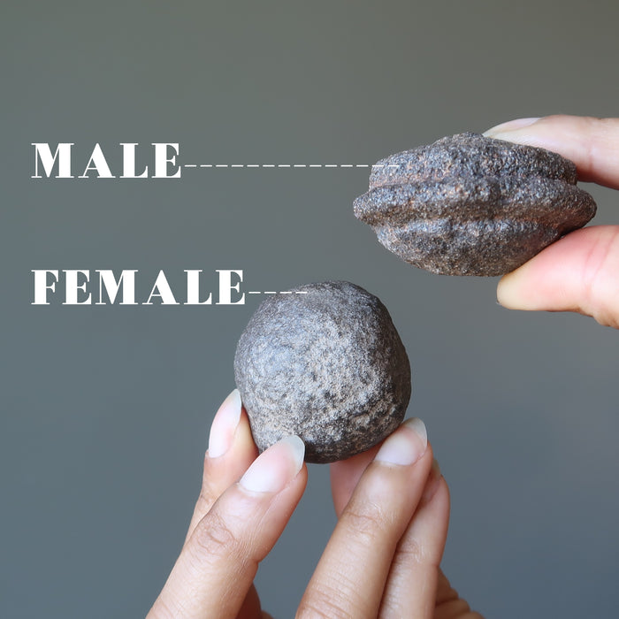Your stones feature natural and untreated Moqui Marbles from Utah, USA. The rounder one is female. The one with a ridge, protrusion, or flatter disc shape is male. Each stone differs in size, shape, color, and formation.