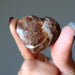 Your crystal heart features natural and untreated Opal from Madagascar. This is a brown stone with white patches and dark mineral inclusions. Each stone is unique. Hearts are measured by width.