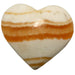 Your new heart features natural and untreated Calcite. This is a golden orange stone with bands of white veins and may show black mineral inclusions. Each is unique. Hearts are measured by width. It is not a replacement for medical treatments.