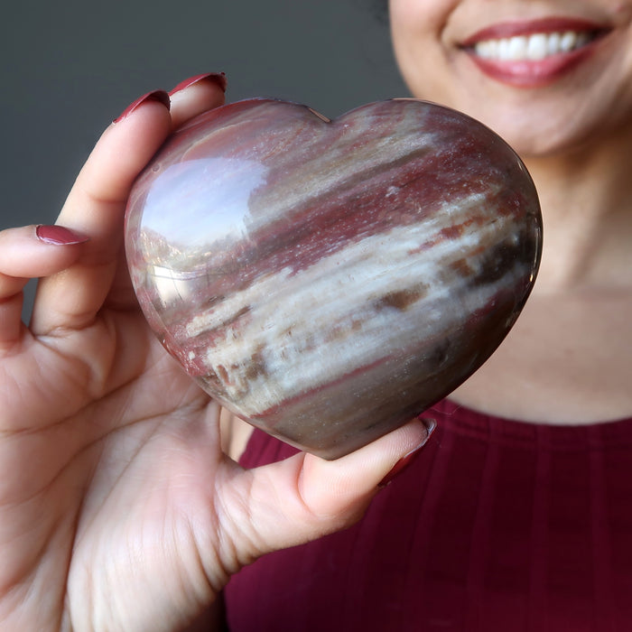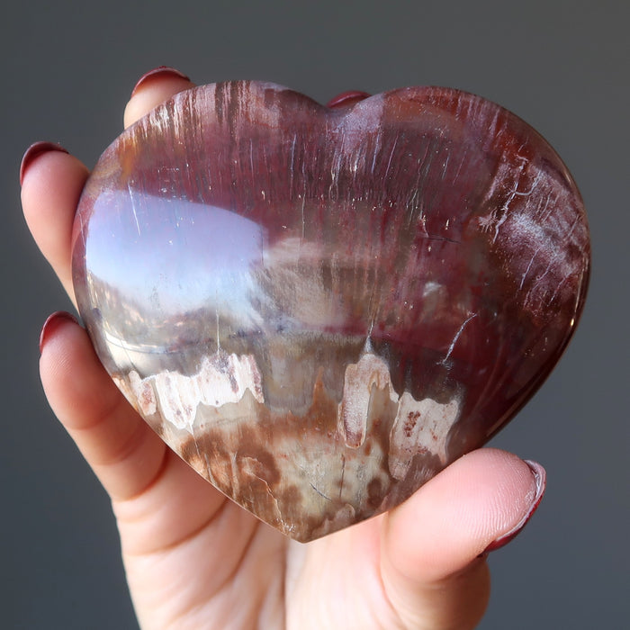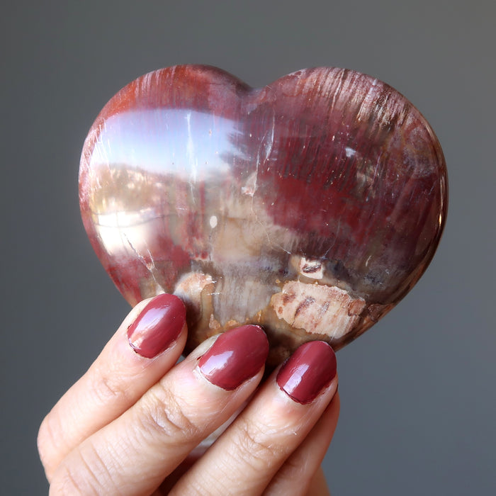 With this Petrified Wood heart in your hand, love gets real. Don't assume that love is a fantasy or far-off conception. This attractive red tree fossil shall root you in reality. Enjoy relationships and romance that are genuine. Isn't it time you heal and get real?