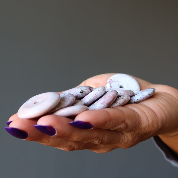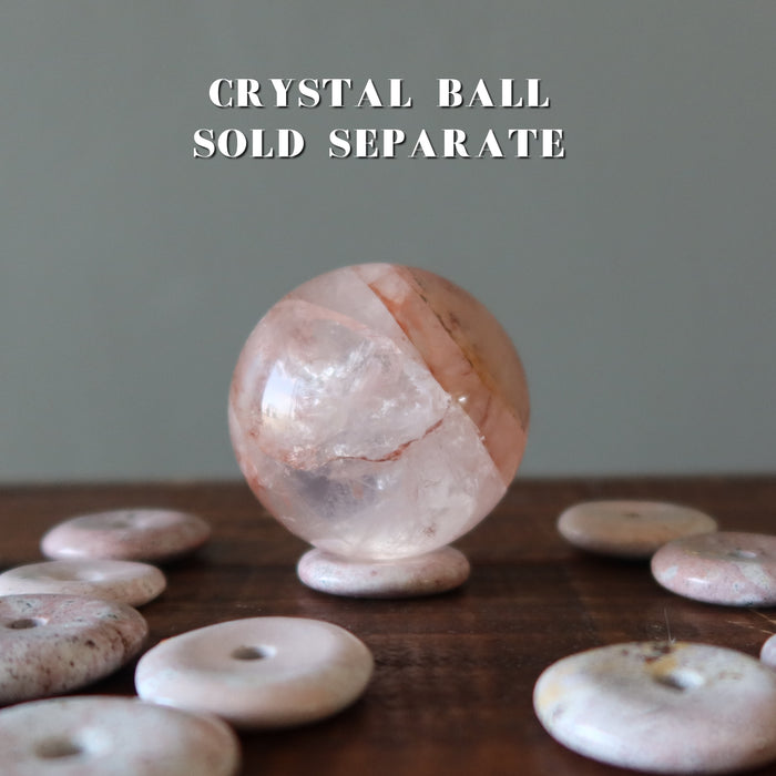 Your new gemstone donut is polished from natural and untreated Jasper. This is a stone speckled with pink and white. It may show other inclusions of green, black, or yellow. Use this amulet in your healing practice, jewelry making, or as a display stand for your crystals! Each stone is unique.