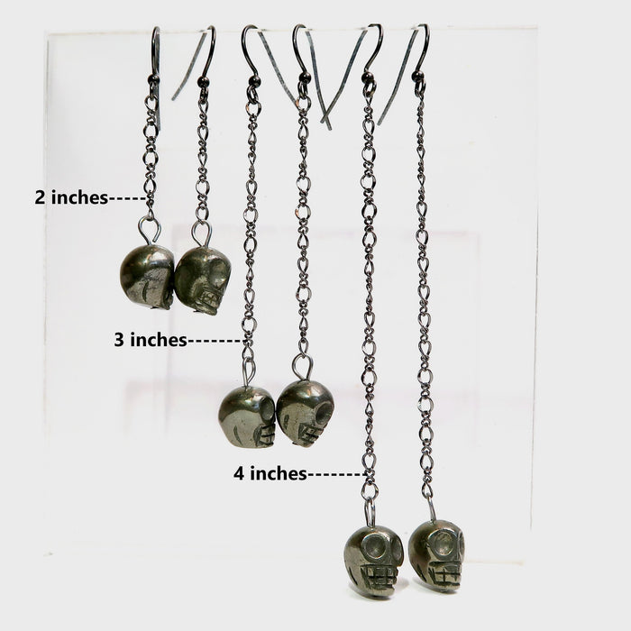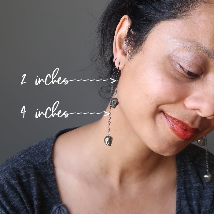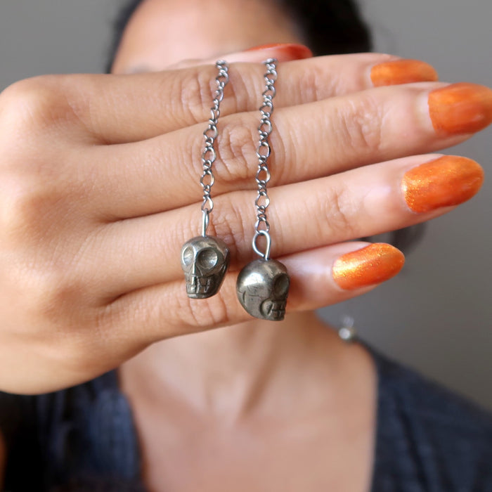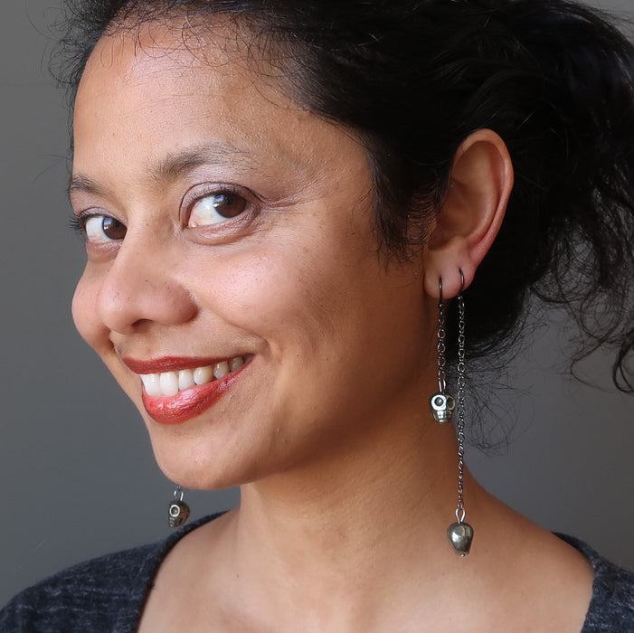 Pyrite Earrings Rocking Fun Skull Skeleton Chain