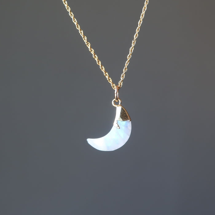 Rainbow Moonstone Necklace Crescent Moon 24-Karat Gold