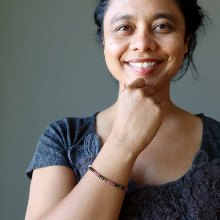 Wear the colors of your love right with your Rainbow Tourmaline bracelet. This precious sparkling gemstone illuminates your aura while elevating your fashion senses. Dripping with desirable energy, this Rainbow Tourmaline bracelet makes a statement you can stand by.