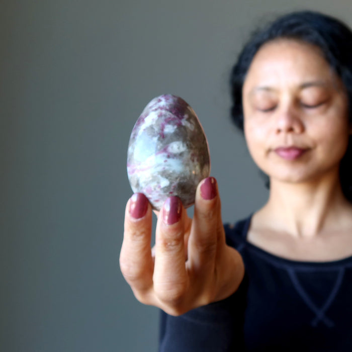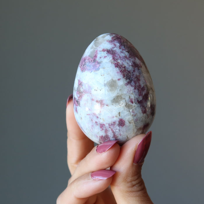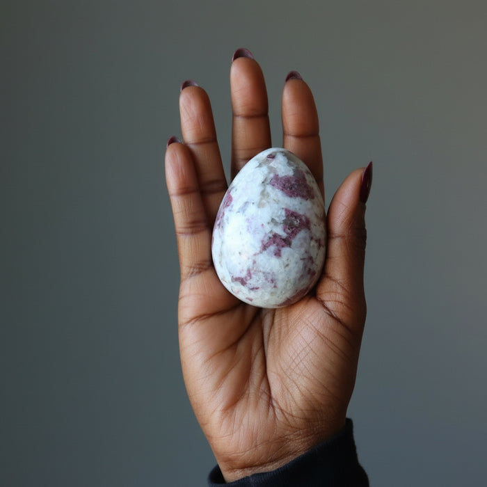Your beautiful Red Tourmaline egg bursts with love energy. This gemstone reminds you to nurture your relationships and cherish your loved ones. We are born to live through the heart and soul. The Red Tourmaline egg is a symbol of loving happiness.