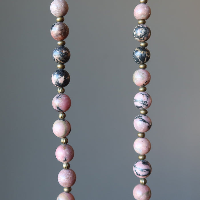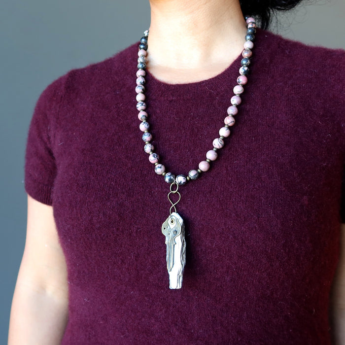 Remember the days of books and prose, when literature reigned as king of entertainment, with this unique Rhodonite necklace.