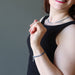 Your bracelet showcases natural and untreated Sapphires. These are white to blue gemstones faceted to reflect the light. The delicate strand of beads is secured with a lobster claw clasp and an extension chain.