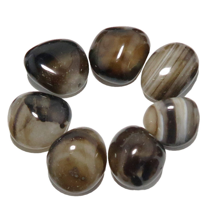 These Sardonyx tumbled stones bring you the ox's strength in a glossy beautiful form. The banded brown gems glisten with Light and protective energy.
