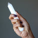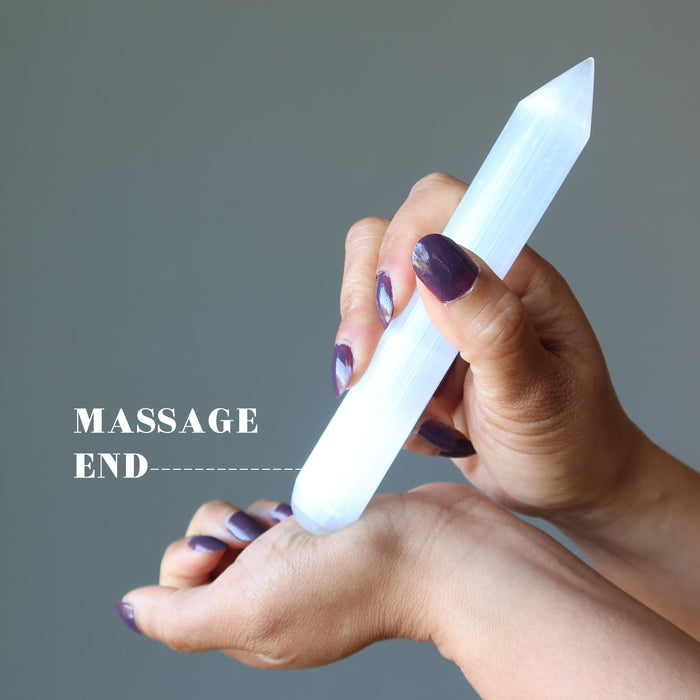 With this shiny Selenite wand, you become the author of your life. Are others dictating your world and controlling your success? Break the spell by protecting your aura with this pencil-shaped crystal. Your massage wand frees you from the shackles; potential flows strongly.
